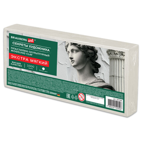 Пластилин скульптурный ЭКСТРА МЯГКИЙ БЕЛЫЙ "Секреты художника", 1 кг, BRAUBERG ART