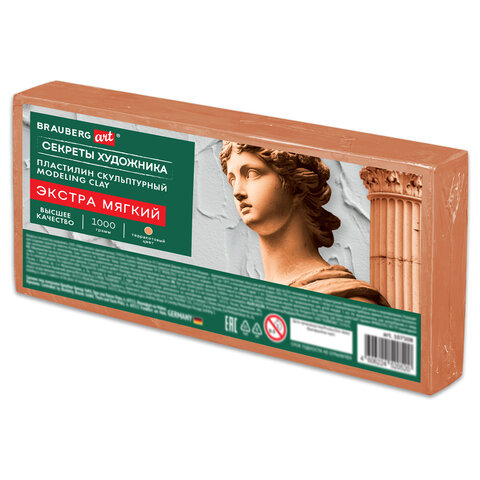 Пластилин скульптурный ЭКСТРА МЯГКИЙ ТЕРРАКОТОВЫЙ "Секреты художника", 1 кг, BRAUBERG ART