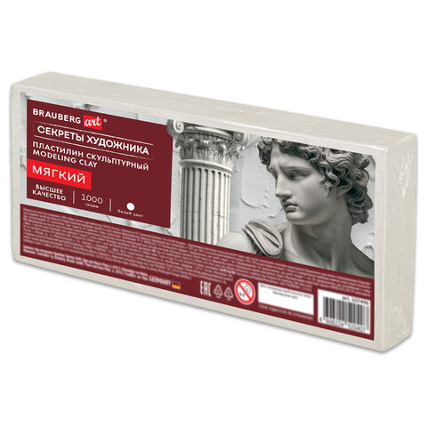 Пластилин скульптурный МЯГКИЙ БЕЛЫЙ "Секреты художника", 1 кг, BRAUBERG ART