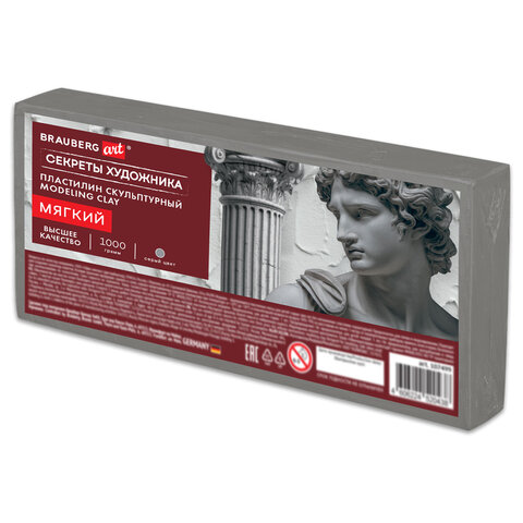 Пластилин скульптурный МЯГКИЙ СЕРЫЙ "Секреты художника", 1 кг, BRAUBERG ART