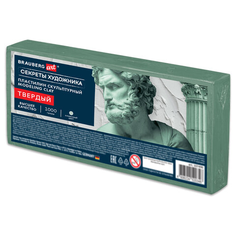 Пластилин скульптурный ТВЕРДЫЙ ОЛИВКОВЫЙ "Секреты художника", 1 кг, BRAUBERG ART