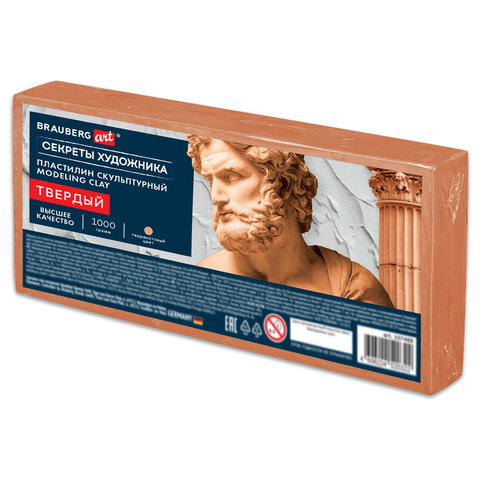 Пластилин скульптурный ТВЕРДЫЙ ТЕРРАКОТОВЫЙ "Секреты художника", 1 кг, BRAUBERG ART