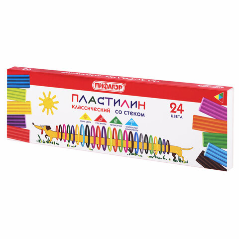 Пластилин классический ПИФАГОР "Веселая такса", 24 цвета, 360 г, СО СТЕКОМ