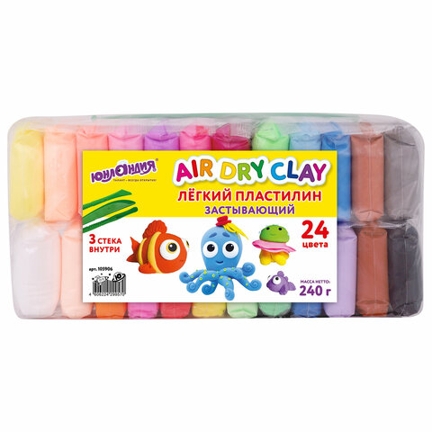 Пластилин супер лёгкий воздушный застывающий 24 цвета, 240 г, 3 стека, ЮНЛАНДИЯ
