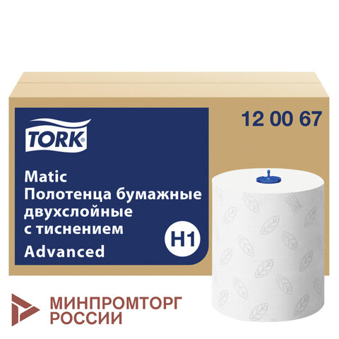 Полотенца бумажные рулонные 150 м, Tellus/TORK Matic (Система H1) ADVANCED, 2-слойные, белые, КОМПЛЕКТ 6 рулонов