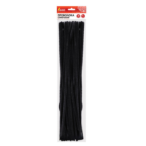 Проволока синельная для творчества "Пушистая", черная, 30 шт., 0,6х30 см, ОСТРОВ СОКРОВИЩ