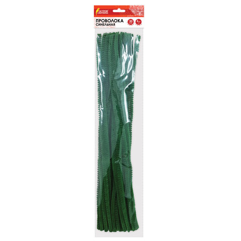 Проволока синельная для творчества "Пушистая", зеленая, 30 шт., 0,6х30 см, ОСТРОВ СОКРОВИЩ