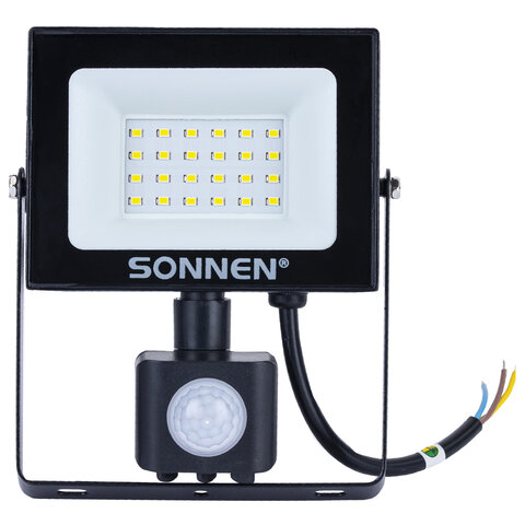 Прожектор светодиодный с датчиком движения 20 Вт, 6500 К, 1600 Лм, 20 м2, IP65, 122х146х51 мм, черный, SONNEN