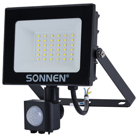 Прожектор светодиодный с датчиком движения 30 Вт, 6500 К, 2400 Лм, 30 м2, IP65, 161х146х51 мм, черный, SONNEN