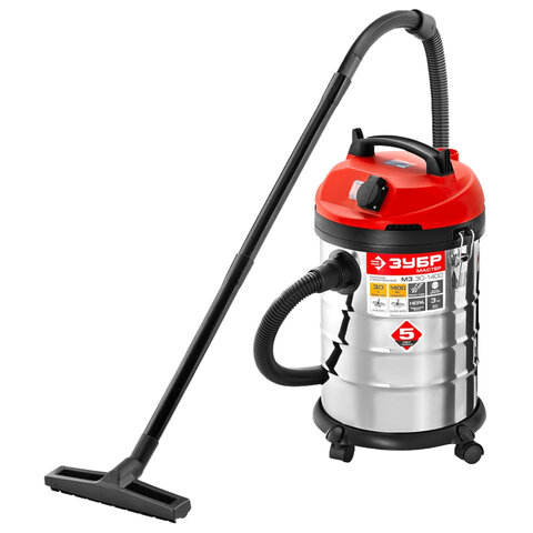 Пылесос хозяйственный ЗУБР ПУ-30-1400, 1400 Вт, сухая/влажная уборка, сила всасывания 300 Вт, бак 30 л, ПУ-30-1400 М3