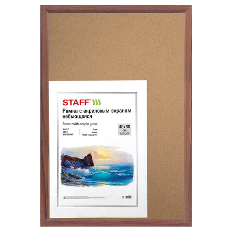 Рамка НЕБЬЮЩАЯСЯ 40х60 см, МДФ под дерево, багет 17 мм, мокко, акриловый экран, STAFF "Carven"