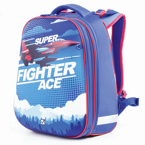 Ранец BRAUBERG EXTRA, 2 отделения, анатомическая спинка, дополнительный объем, для мальчиков, "Истребитель", 39х28х19 см