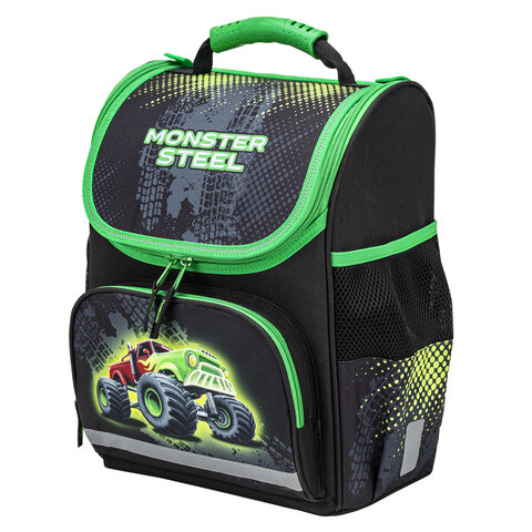 Ранец ПИФАГОР BASIC, 1 отделение, 3 кармана, эргономичная спинка, "Monster steel", 35х28х18 см