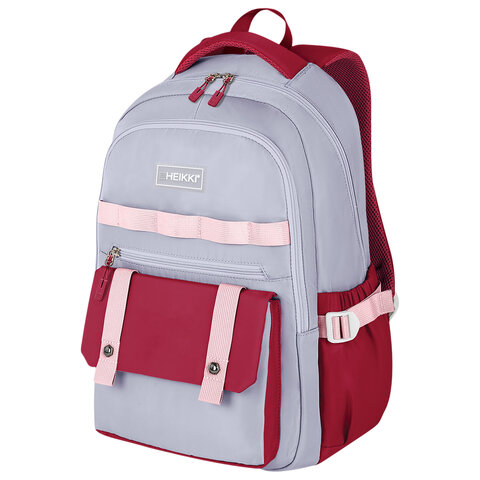 Рюкзак HEIKKI GOODLY (ХЕЙКИ) универсальный, 2 отделения, отделение для ноутбука, серый/красный, 46x33x18 см