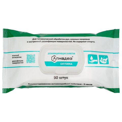 Дезинфицирующие салфетки бесспиртовые 90 шт., АЛМАДЕЗ-ОПТИМА, для обработки рук и поверхностей, САЛ-В-52