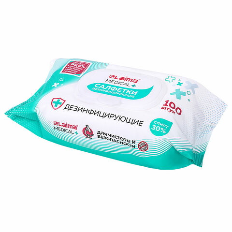 Дезинфицирующие салфетки спиртовые (30%), для любых поверхностей, 100 шт., LAIMA MEDICAL
