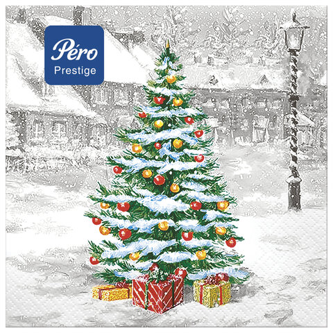 Салфетки бумажные 20 шт., 33х33 см, "Белая зима", 3-слойные, PERO "Prestige"