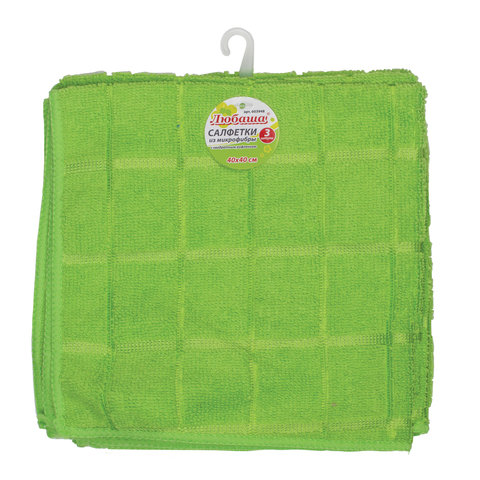 Салфетки из МИКРОФИБРЫ универсальные 40х40 см, КОМПЛЕКТ 3 шт., КЛЕТКА, зеленые, 220 г/м2, ЛЮБАША