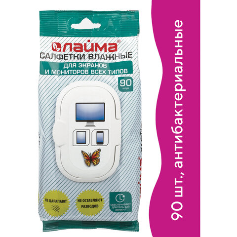 Салфетки влажные LAIMA "ДЛЯ ЭКРАНОВ всех типов и ОПТИКИ (очки, объективы)", клапан, 90 штук