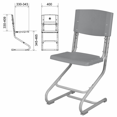 Стул ученический регулируемый "ДЭМИ" СУТ.01, 400х330-343х795-874 мм, серый каркас, пластик серый