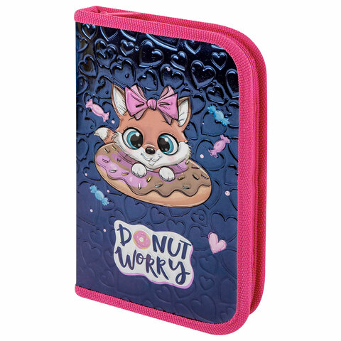 Пенал ЮНЛАНДИЯ, 1 отделение, металлизированный картон, конгрев, 19х11 см, "Donut worry"