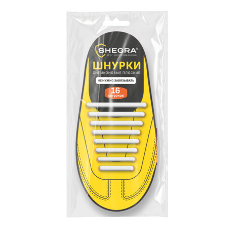 Шнурки силиконовые плоские БЕЛЫЕ 16 шт, ширина 7 мм, SHEGRA