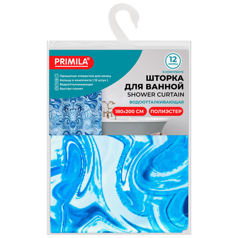Шторка для ванной ПОЛИЭСТЕР, 180х200 см, кольца в комплекте, ГОЛУБЫЕ ВОЛНЫ, PRIMILA (ПРИМИЛА)