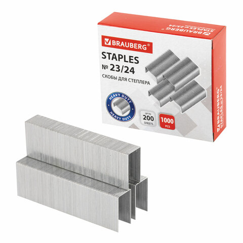 Скобы для степлера №23/24, 1000 штук, СВЕРХПРОЧНЫЕ, от 110 до 200 листов, BRAUBERG