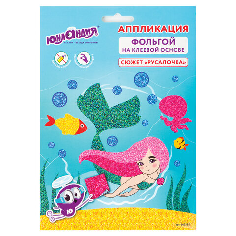 Набор для творчества "Аппликация из фольги", "Русалочка", самоклеящаяся основа 20х15 см, ЮНЛАНДИЯ