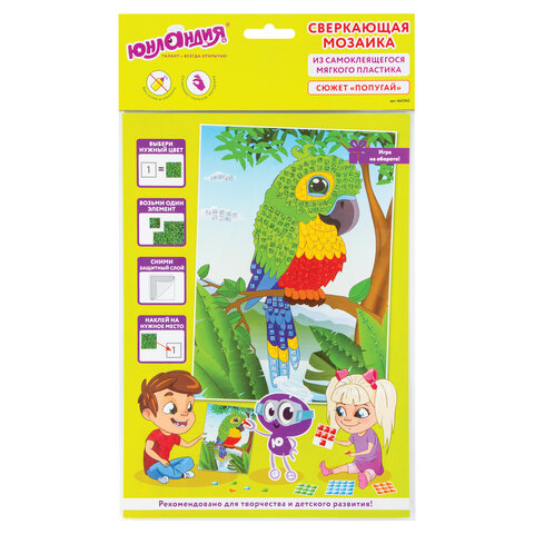 Набор для творчества "Сверкающая мозаика из мягкого пластика", "Попугай", 21х29 см, ЮНЛАНДИЯ