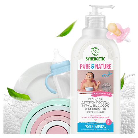 Гель для мытья детской посуды 500 мл, SYNERGETIC, биоразлагаемый, дозатор