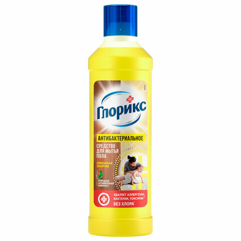 Средство для мытья пола дезинфицирующее 1 л ГЛОРИКС "Лимонная Энергия", без хлора