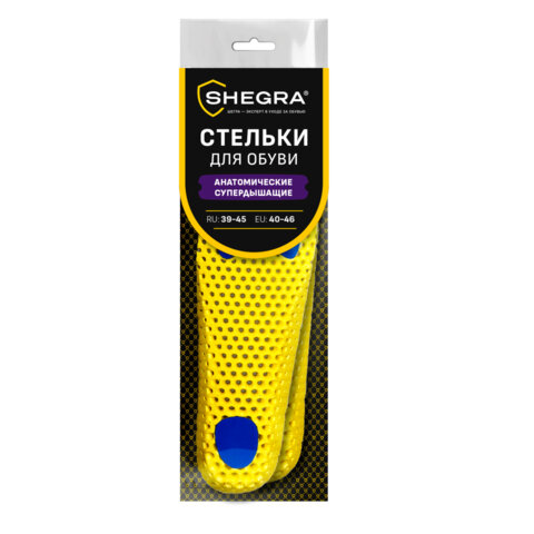 Стельки для обуви АНАТОМИЧЕСКИЕ СУПЕРДЫШАЩИЕ, материал EVA, размер RU 39-45 / EU 40-46, с линиями выреза, SHEGRA (ШЕГРА)