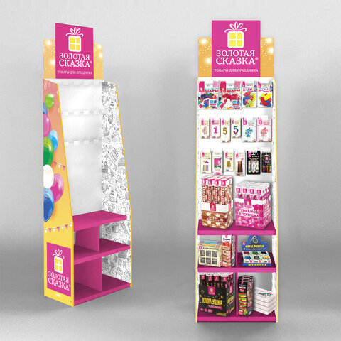 Стойка для размещения товара напольная усиленная ЗОЛОТАЯ СКАЗКА, 200х60х40 см, 3 полки, 18 крючков