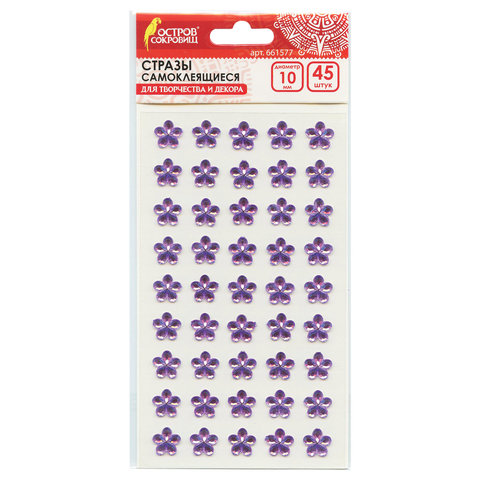 Стразы самоклеящиеся "Цветы", розовые, 10 мм, 45 шт., на подложке, ОСТРОВ СОКРОВИЩ