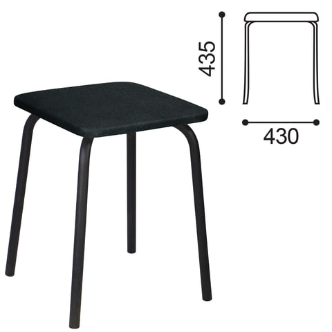 Табурет РС01-03, черный каркас, черный кожзам, РС.01/03-201-01