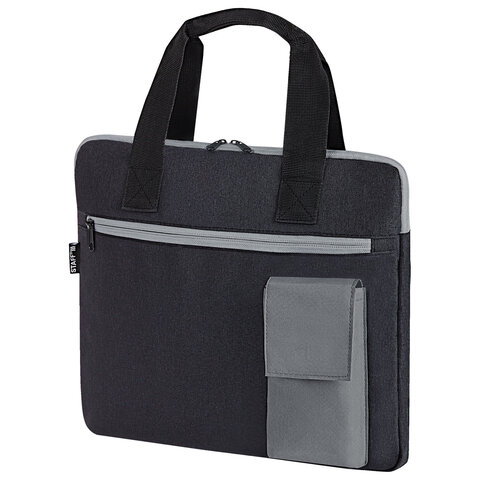 Сумка для документов STAFF DELEGATE на молнии, два кармана, полиэстер, черная/серая, 30х34х2 см