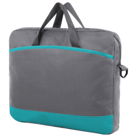 Сумка для документов STAFF MANAGER на молнии с карманом, полиэстер, серо-бирюзовая, 32х37х5 см