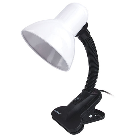 Настольная лампа / светильник SONNEN OU-108, на прищепке, цоколь Е27, белый