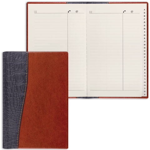 Телефонная книжка А5 (136х202 мм), BRAUBERG "Cayman", комбинированная гладкая и кожа крокодила, 96 л., вырубной алфавит