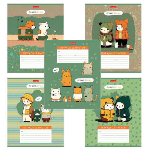 Тетрадь 12 л., HATBER клетка, обложка картон, "Лучшие друзья" (микс в спайке), 086054, 12Т5В1