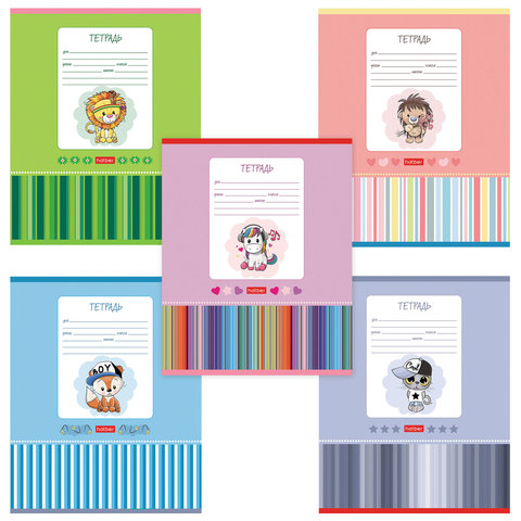 Тетрадь 12 л., HATBER, косая линия, обложка картон, "Мультяшки" (микс в спайке), 057242, 12Т5В6