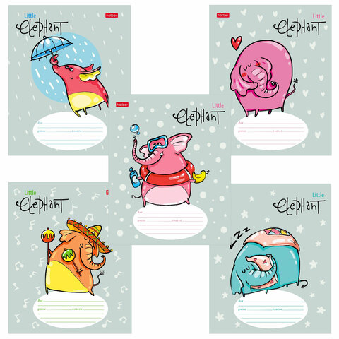 Тетрадь 12 л. HATBER линия, обложка картон, "Little Elephant" (5 видов в спайке), 12Т5В2