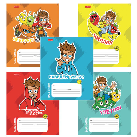 Тетрадь 12 л., HATBER линия, обложка картон, "Влад А4" (микс в спайке), 082390, 12Т5В2