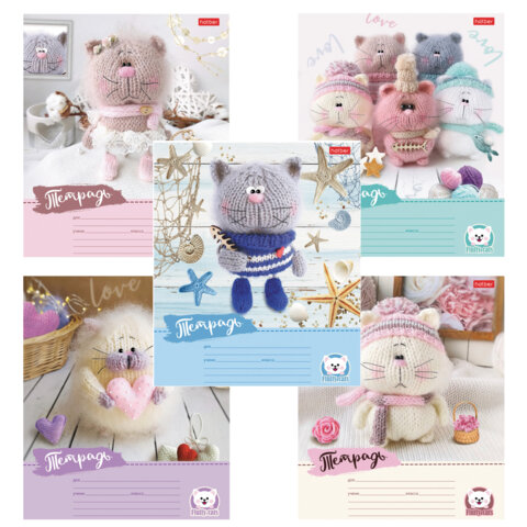 Тетрадь 12 л., HATBER узкая линия, обложка картон, "Уютные котики" (микс в спайке), 075154, 12Т5В7