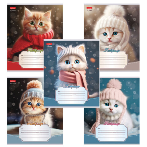 Тетрадь 12л. HATBER линия, обложка картон, Уютные котики (микс в спайке), 12Т5В2
