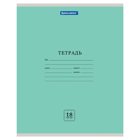 Тетрадь 18 л. BRAUBERG "ЭКО", клетка, обложка картон 170 г/м2, ЗЕЛЕНАЯ ПАСТЕЛЬНАЯ