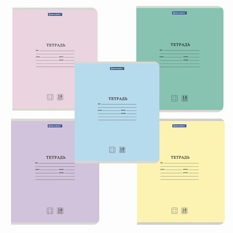Тетрадь 18 л. BRAUBERG "КЛАССИКА NEW" клетка, обложка картон, АССОРТИ (5 видов)
