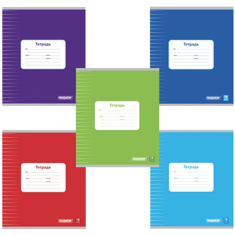 Тетрадь 18 л., ПИФАГОР, линия, офсет №2 ЭКОНОМ, обложка картон 170 г/м2, ОДНОТОННАЯ