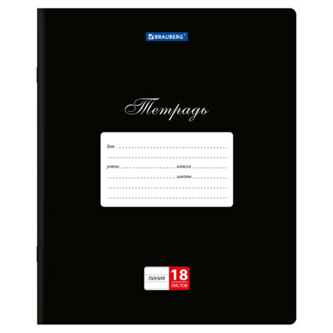 Тетрадь 18л. BRAUBERG КЛАССИКА, линия, обложка картон, ЧЕРНАЯ